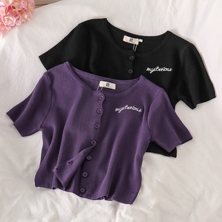 NUZIRO Áo Thun Tay Ngắn Cổ Tròn Màu Sắc Kẹo Ngọt Thời Trang