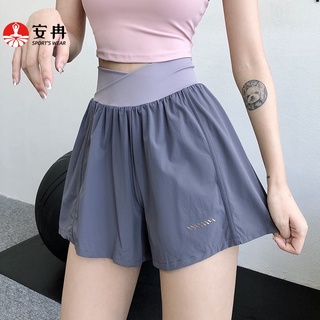 Quần short thể thao ANRAN lưng cao giả hai lớp thời trang năng động cho nữ