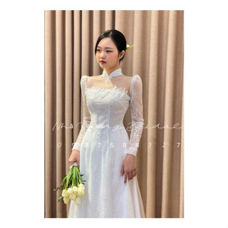 Áo Dài Cô Dâu Thiết Kế Điểm Ren Nổi 6 Tà Cao Cấp