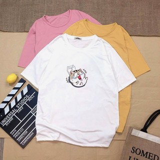 Áo thun unisex tay lỡ mèo ngộ nghĩnh vải dày mịn 20N1243