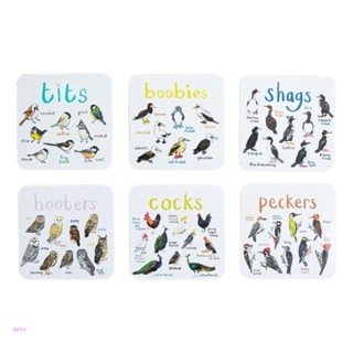 Aoto Set 6 Tấm Lót Cốc Hình Vuông Họa Tiết Chim Pun Có Thể Tái Sử Dụng