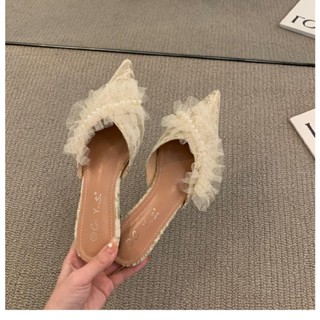 Giày Sandal cao gót nữ mũi nhọn hở gót phối dây