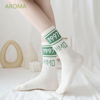 Đôi vớ thể thao thoáng khí họa tiết sọc in chữ phong cách Harajuku cho nữ