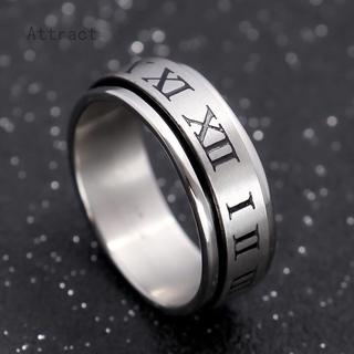 Attract Nhẫn xoay hợp kim 8mm khắc chữ số La Mã cá tính cho nam và nữ