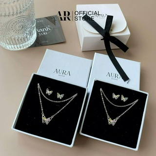 Set dây chuyền khuyên tai bạc 925 vòng cổ khuyên tai hồ điệp ngũ sắc- Aura Silver DC26-KT26