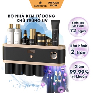 Bộ Nhả Kem Đánh Răng Khử Trùng UV Tự Động, Hộp Đựng, Giá Treo Bàn Chải, Kệ Phòng Tắm Dán Tường, Giá Đựng Cốc - Automatik