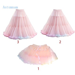Chân Váy Xòe Tutu Dáng Ngắn Lưng Thun Co Giãn Màu Cầu Vồng Cho Nữ