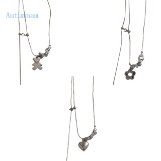 Vòng cổ Kim Loại Mặt Hình Hoa / Trái Tim / Gấu Bằng Thép Không Gỉ Thanh Lịch Cho Nữ