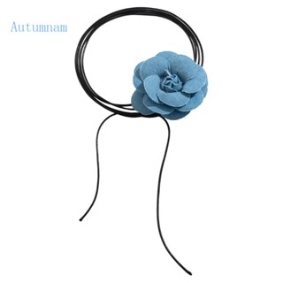 Vòng Cổ Choker Chất Liệu Denim Mặt Hoa Màu Xanh Dương Phong Cách Cổ Điển Cho Nữ Y2K