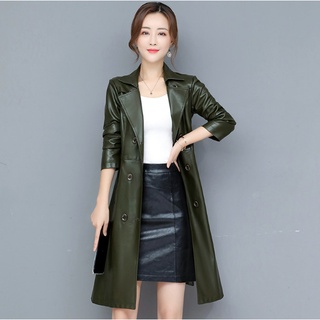 (HÀNG SẴN) Áo Khoác Da Nữ Dáng Dài Có Dây Đai Trẻ Trung KD17 - Hàng Quảng Châu Cao Cấp