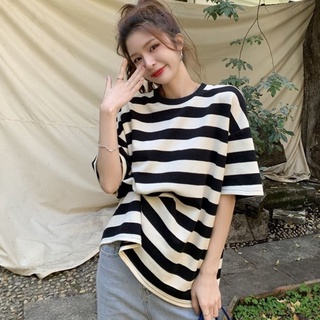 Áo Thun Tay Ngắn Kẻ Sọc Ngang Trẻ Trung Hợp Thời Trang 178282 Áo Thun Cổ Tròn Dáng Rộng Thời Trang Mùa Hè Dễ Phối Đồ
