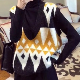 Áo Len Không Tay Họa Tiết Kim Cương Phong Cách Hàn Quốc 206238 Áo Sweater Sát Nách Dáng Rộng Thời Trang Mùa Thu Trẻ Trung