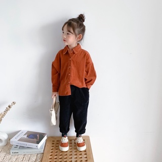 Áo Sơ Mi Nhung, Áo Khoác Ngoài Cho Bé Trai và Bé Gái Phong Cách vintagel_Hàng Tuyển Chọn Cao Cấp A4