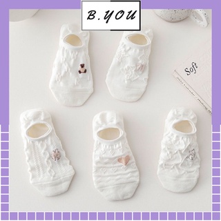 Tất nữ cổ ngắn, họa tiết gấu cute, phong cách hàn quốc, chất liệu thoáng mát, thấm mồ hôi