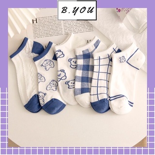 Tất nữ cổ ngắn xanh dương phong cách hàn quốc, họa tiết dễ thương cute, chất liệu thoáng mát, thấm mồ hôi TT34
