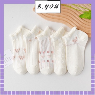 Set 5 đôi tất cổ ngắn lolita phong cách hàn quốc cổ nhún xinh xắn