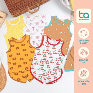 Set 2 bộ ba lỗ phối viền in hình gấu đáng yêu cho bé trai bé gái chất thun lạnh mềm mịn