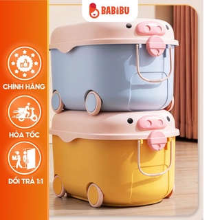 Thùng Đựng Đồ Chơi Cho Bé hình vịt heo dễ thương có bánh xe Babibu