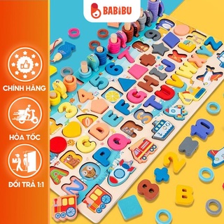 Đồ Chơi Gỗ Đa Năng 7in1 Cho Bé,Đồ Chơi Phát Triển Trí Tuệ - Câu Cá, Làm Toán,Học Chữ, Phương Tiện Giao Thông Babibu