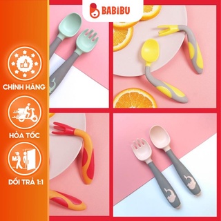 Bộ Thìa Dĩa Tập Xúc Cho Bé Tập Ăn Dặm Uốn Cong Dễ Thương Babibu - TDUC