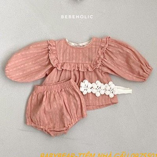 Bộ quần áo đũi dài tay cổ bèo điệu đà cho bé gái xinh xắn đáng yêu