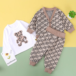 Set 3 món bộ quần áo và khoác len rời cho bé trai họa tiết sang chảnh 5-17kg