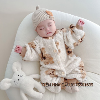 Bộ Body Lông Cừu hình gấu nâu và gấu be cho bé kèm túi gấu cho bé phong cách Hàn Quốc ( hàng loại 1 lót nỉ ấm áp)
