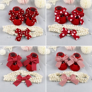 Set 2 Món Gồm Vớ + Băng Đô Chống Trượt Đính Nơ Hoạt Hình Dễ Thương Cho Bé Gái