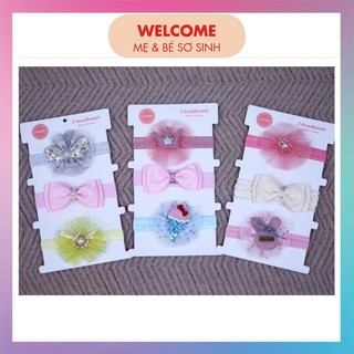 Băng đô cho bé, sét 3 turban nơ đáng yêu đội đầu cho bé gái đội đi chơi du lịch
