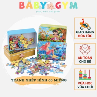 Đồ chơi xếp hình cho bé, Tranh ghép hình bằng gỗ 60 mảnh có tranh hướng dẫn và hộp đựng cao cấp BABYGYM