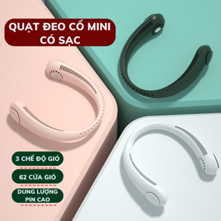 Quạt mini đeo cổ không cánh làm mát thông minh 360 độ, quạt treo cổ tích điện 3 chế độ pin 2400mAh sạc USB - BABYHOPE