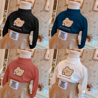 Áo Thun Tay Dài Cổ Cao In Họa Tiết Hoạt Hình Gấu Đơn Giản Thời Trang Cho Bé Trai Và Gái