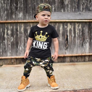 Áo thun ngắn tay và quần sọc rằn ri cá tính cho bé