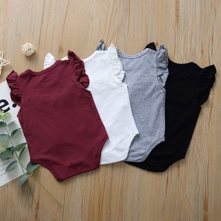 Áo Liền Quần Cổ Bèo Nhún Trơn Màu Cho Bé Gái