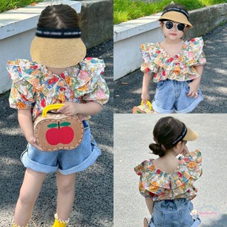 Áo Thun Tay Ngắn Phồng Thời Trang Mùa Hè Hàn Quốc Dành Cho Bé Gái