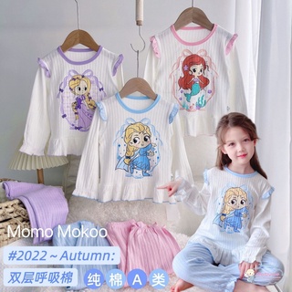 Set Đồ Ngủ 2 Món Gồm Áo Sơ Mi + Quần Dài Bằng Vải Cotton Thời Trang Xuân Thu Cho Bé Gái