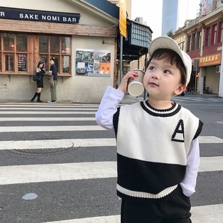Áo len không tay in chữ phong cách hàn quốc mới dành cho bé trai