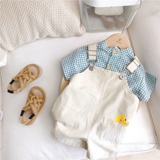Set Áo Sơ Mi Kẻ Sọc Caro + Quần Yếm Phong Cách Hàn Quốc Cho Bé Trai