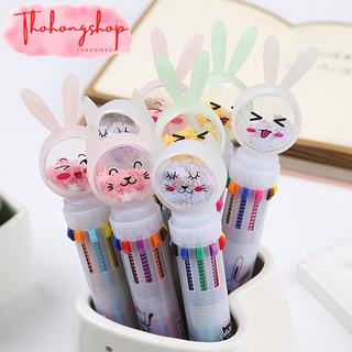 Bút bi bấm 10 màu nhũ chảy đầu hình thỏ xinh