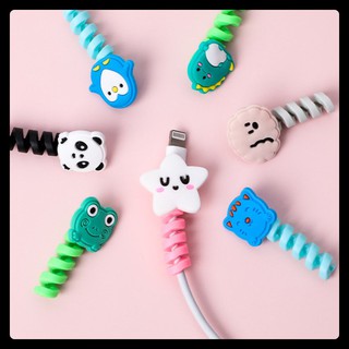 Phụ kiện gắn dây sạc USB đầu thú đáng yêu, cuộn xoắn lò xo bảo vệ chống đứt gãy tai nghe điện thoại