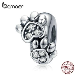 Hạt Phụ Kiện Bamoer SCC1312 Hình Bàn Chân Cún Bằng Bạc 925 + Silicon Làm Trang Sức Thủ Công DIY