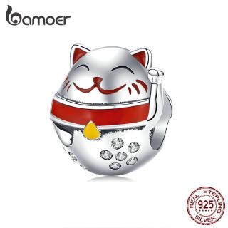 Hạt Charm Bamoer Bằng Bạc 925 Hình Mèo May Mắn Tráng Men Dùng Làm Vòng Tay Cho Nữ 3mm