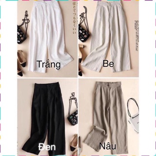 Quần ống rộng nữ vải đũi cạp cao 2 cúc suông dài tôn dán chun sau co dãn thoải mái Thời trang BANAMO sớ đũi 2khuy 922