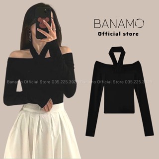 Áo thun chính hãng Banamo Fashion áo trễ vai phối dây yếm cổ chéo dáng ôm 3133