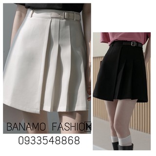 Chân váy xếp ly phối đai lệch chân váy ngắn dáng chữ A chất tuyết mưa thời trang công sở Banamo Fashion 5318