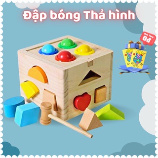 [ Tặng Tranh Cát ] Đồ Chơi Hộp Thả Hình Đập Bóng Bằng Gỗ Giúp Bé Học Hình Khối Màu Sắc