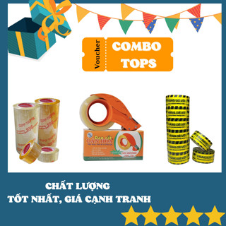 Combo đóng gói siêu tiện lợi: 1 cây băng keo trong 1,7kg, 1 cuộn logo hàng dễ vỡ, 1 cắt băng keo 200yard