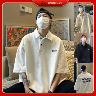 Áo polo Nam Nữ Tay Ngắn Dáng Rộng In Chữ áo thun có cổ Phong Cách Hàn Quốc Thời Trang áo phông polo nam