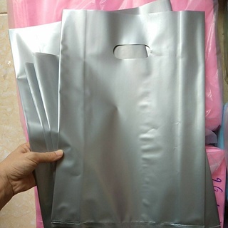 Nửa kg túi nilong đựng hàng hột xoài có quai xách PE bóng dẻo màu xám bạc, ghi xám gấp hông loại 1