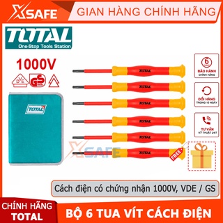 Bộ 6 tua vít cách điện TOTAL THKIPSD0601, sử dụng chất liệu S2, bộ tuốc nơ vít cách điện có chứng nhận 1000V, VDE/GS